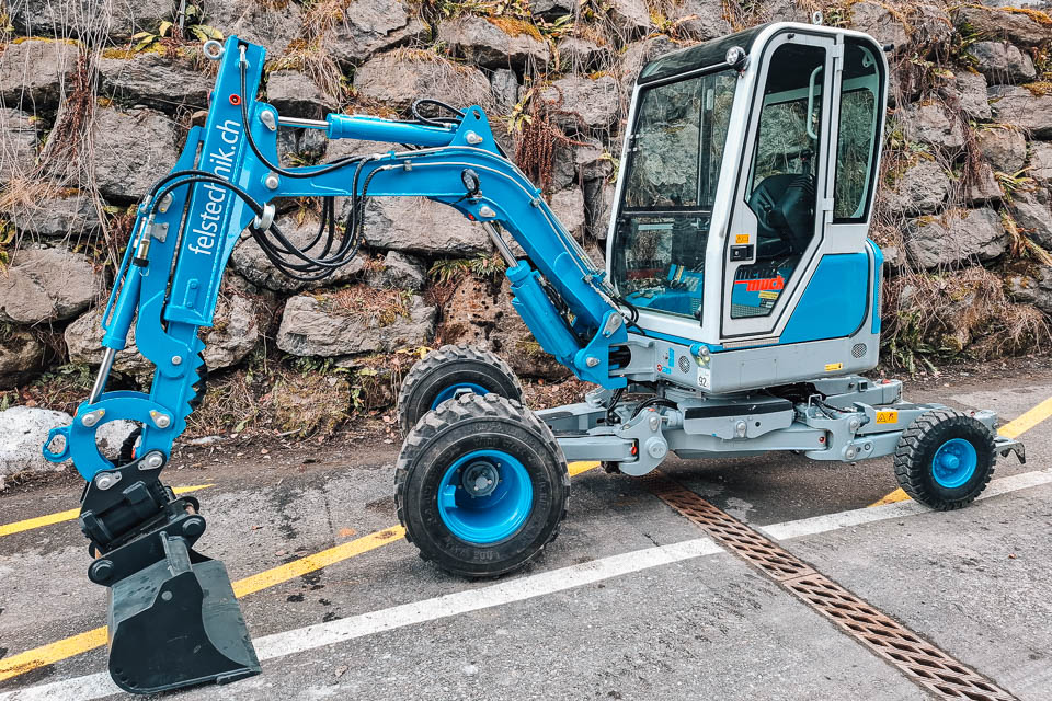 Besonders in der Felssicherung und im Bauservice im Gebirge kommen die Menzi vielseitig zum Einsatz: Sei es für Erdarbeiten, als Hubgerät oder für weitere Spezialaufgaben. Um unsere Baustellen weiterhin optimal abzudecken, haben wir eine dritte Maschine beschafft. Der neue Typ A25 bietet etwas mehr Leistung und zusätzliche Ausrüstungen wie teleskopierbare Schreitfüsse, Powertilt und Seilwinde. Nach der Bereitstellung und Lackierung steht der A25 seit März im Einsatz und ergänzt unseren Maschinenpark gezielt dort, wo Flexibilität und Geländegängigkeit gefragt sind.