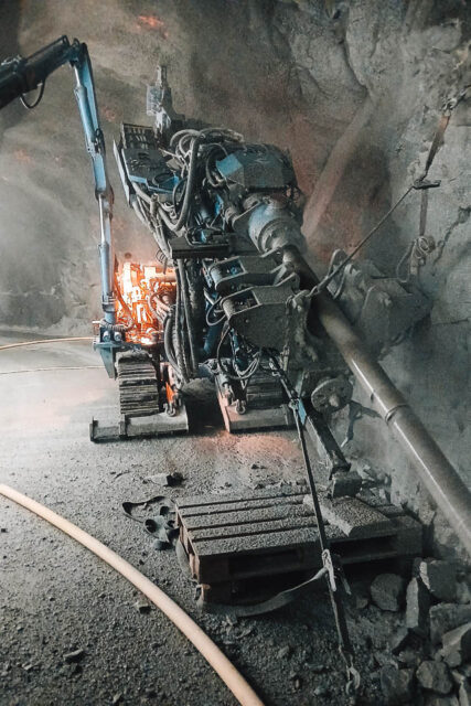 Die Zielbohrung führten wir mit unserem Commachio MC 600 Nr. 2 aus. Nach der Absteckung durch den Geometer richteten unsere Mitarbeitenden die Lafette des Bohrgeräts millimetergenau aus. Anschliessend führten wir die Bohrung mit einem Durchmesser von 160 mm aus und weiteten sie danach mit einer Pilotkrone auf 400 mm auf. Die grösste Herausforderung bestand darin, dass sämtliche Arbeiten im Stollen ausgeführt wurden – unter entsprechend engen Platzverhältnissen. 132 m Anker zur Aufhängung der Spülleitung Parallel zur Zielbohrung erstellten wir mit unserem Jumbo Anker in der Stollendecke, um die Spülleitung sicher an der Decke fixieren zu können