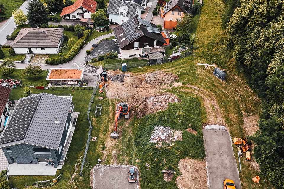 Nach einem sommerferienbedingten Unterbruch konnten wir die Arbeiten in der Baugrube erfolgreich abschliessen. Dank der sorgfältig ausgeführten Sprengarbeiten durften wir im Anschluss eine weitere Baugrube im gleichen Dorf realisieren. In der Baugrube Rankhag wurden nochmals rund 450 m3 Fels abgetragen. Anfang September waren beide Baugruben erfolgreich fertiggestellt.