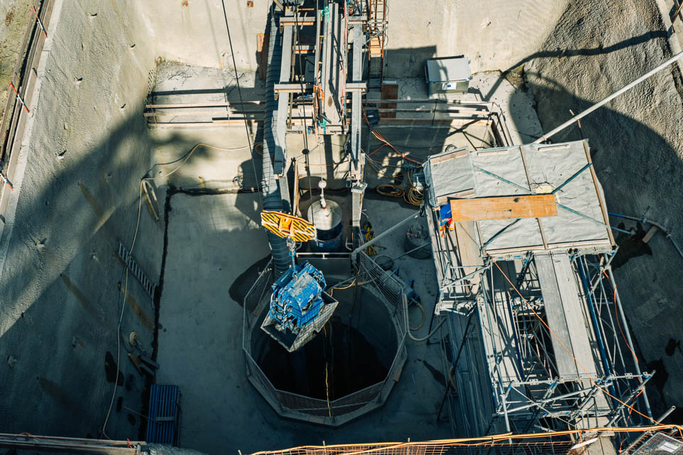Der Arbeitssicherheit wird während der gesamten Bauzeit höchste Priorität beigemessen. Die engen Platzverhältnisse und der geringe Schachtdurchmesser bei einer Tiefe von fast 80 m stellen besondere Anforderungen an die Logistik und Koordination.